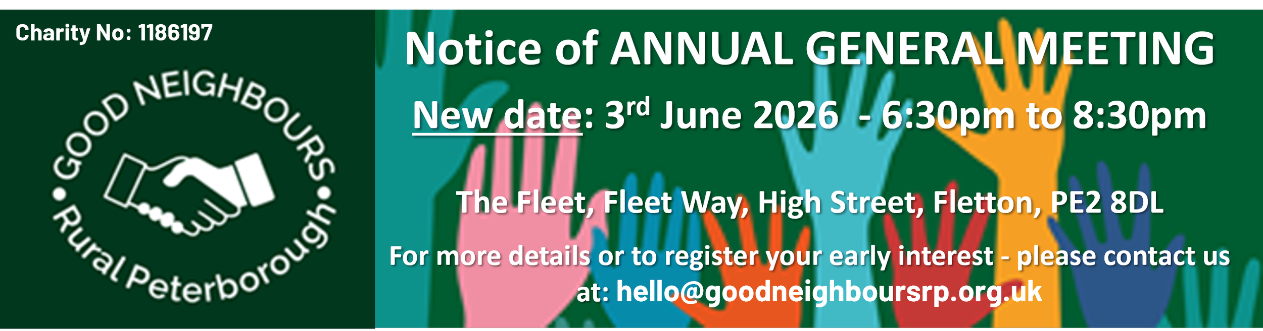 Helen Wainwright 30/01/2025 Helen Wainwright 30/01/2025 Notice of Annual General Meeting, Thursday 27th February 2025, Bedford Hall, Thorney – 6.30pm. Read More
